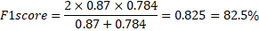 Accuracy may be misleading when the class is heavily unbalanced because its value may be inflated by the majority class. F1 score is a robust metric to heavily unbalanced data because it penalizes misclassification more. It is the harmonic mean of precision and recall and it is given by: