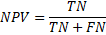 This is long for NPV and it measures how accurate a model is in its negative predictions. It is the ratio of true negative to predicted negative. It is given by: